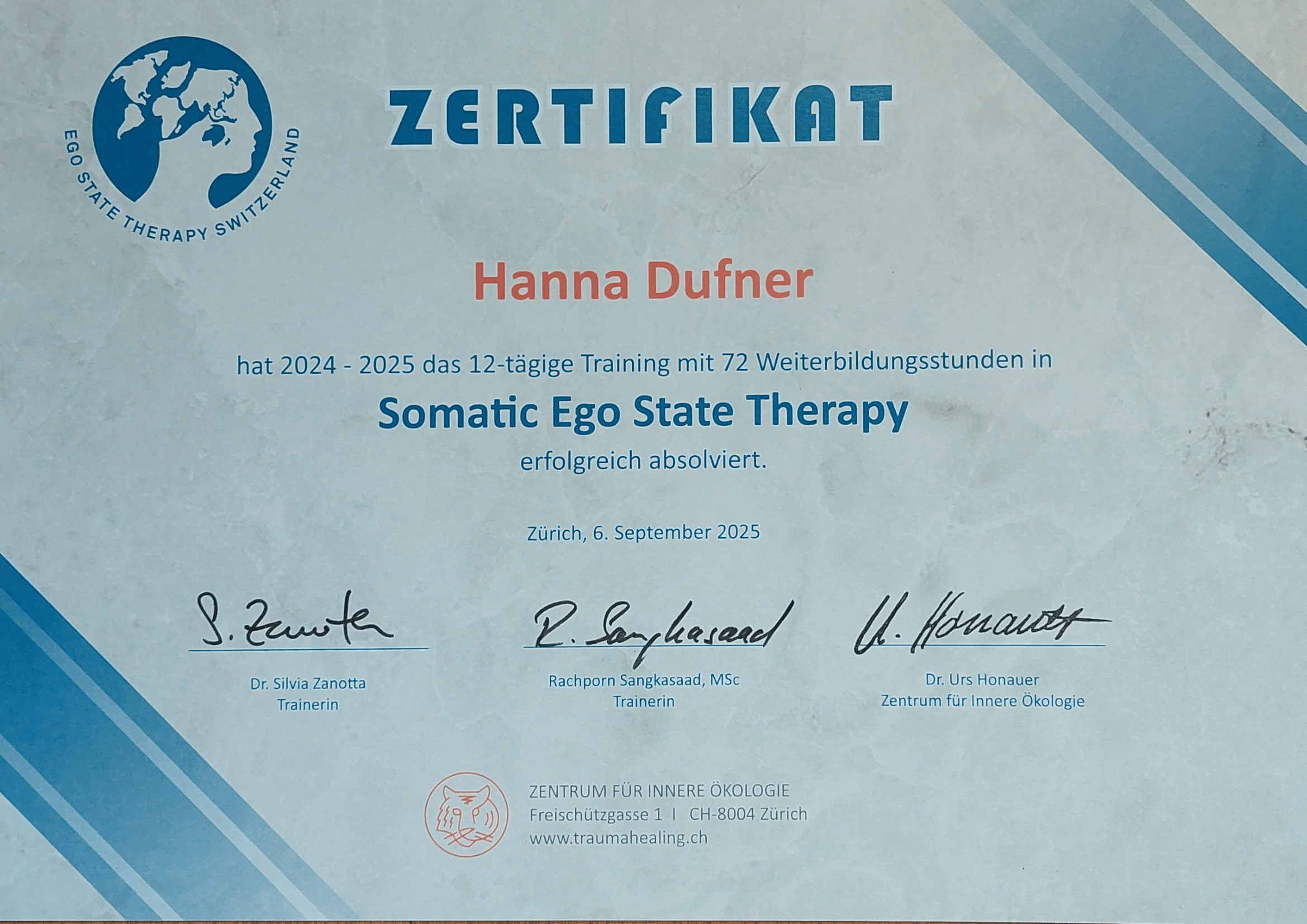 Pracuję w podejściach, które łączą ciało, emocje i relacje. Jestem facylitatorką EmotionAid®, Soma Embodiment® oraz Somatic Ego State Therapy (SEST), a także certyfikowanym providerem Safe & Sound Protocol (SSP) – treningu słuchowego opartego na teorii poliwagalnej Stephena Porgesa.